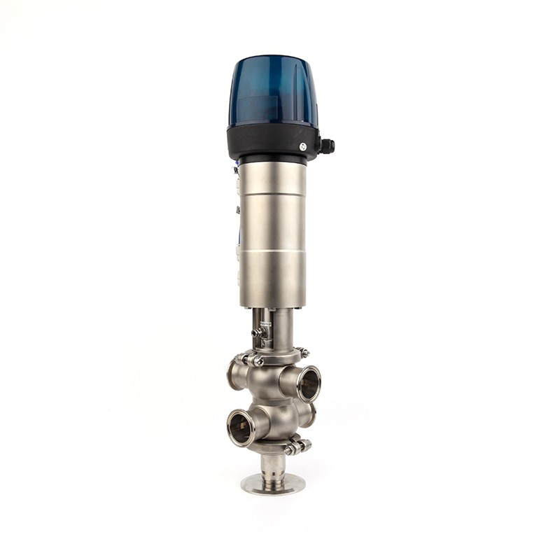 该阀用于验证管道交叉中不同材料的混合。当阀门关闭时,两管双密封,可消除液体从一管向另一管泄漏。当密封损坏时,泄漏物将由排水腔排出。隔离室洗液供应商采用独特的CIP连接,隔离室清洗与阀门位置无关。