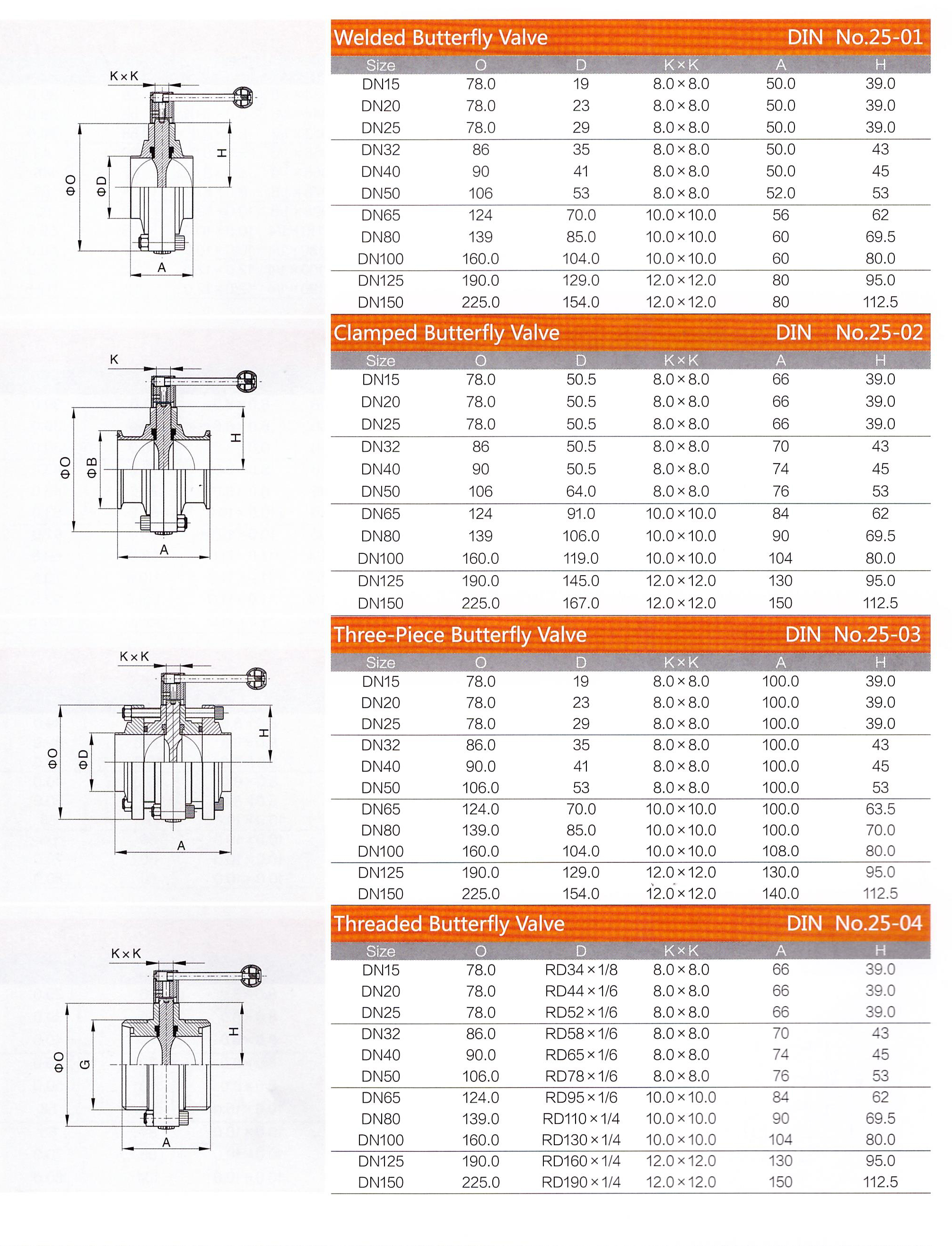 我们的蝶形阀体可提供焊接端,阳端,母端和夹端。我们的蝶阀可以安装有不同类型的手柄,如4位拉拉手柄,12位夹持手柄和10种更多的其他类型,或者安装有致动器,用于自动控制您的广泛使用。
