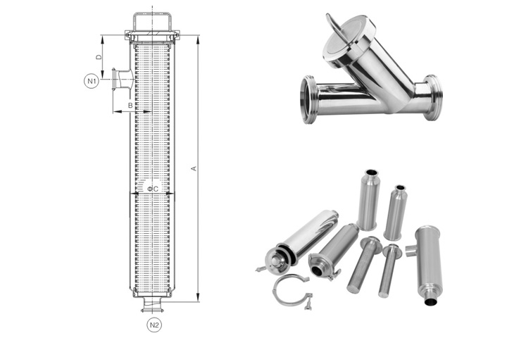过滤器广泛应用于食品加工、化妆品、化工、医药等行业的辅助服务。由于其卫生设计,它主要用于过滤破坏泵和其他设备的微粒。